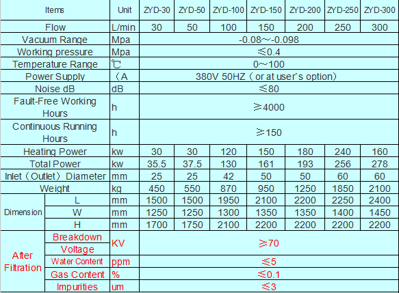 3.Being able to remove the trace moisture and various gas in the oil rapidly, ensure zero acetylene existence in the oil. ZYD double stage transformer oil purifier has vacuum oil filling and vacuum drying function.